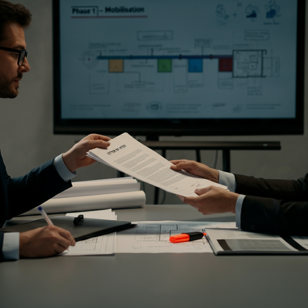 An LOI lets you kick off early-stage works while formal contracts are still being finalised. In fast-moving projects,